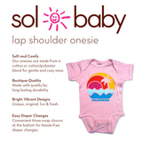 Dress your little one in the epitome of California charm with the Sol Baby California Sunset Palm Pink Bodysuit. This adorable bodysuit features a picturesque California sunset and palm tree graphic against a soft pink backdrop, evoking the laid-back vibes of the Golden State.