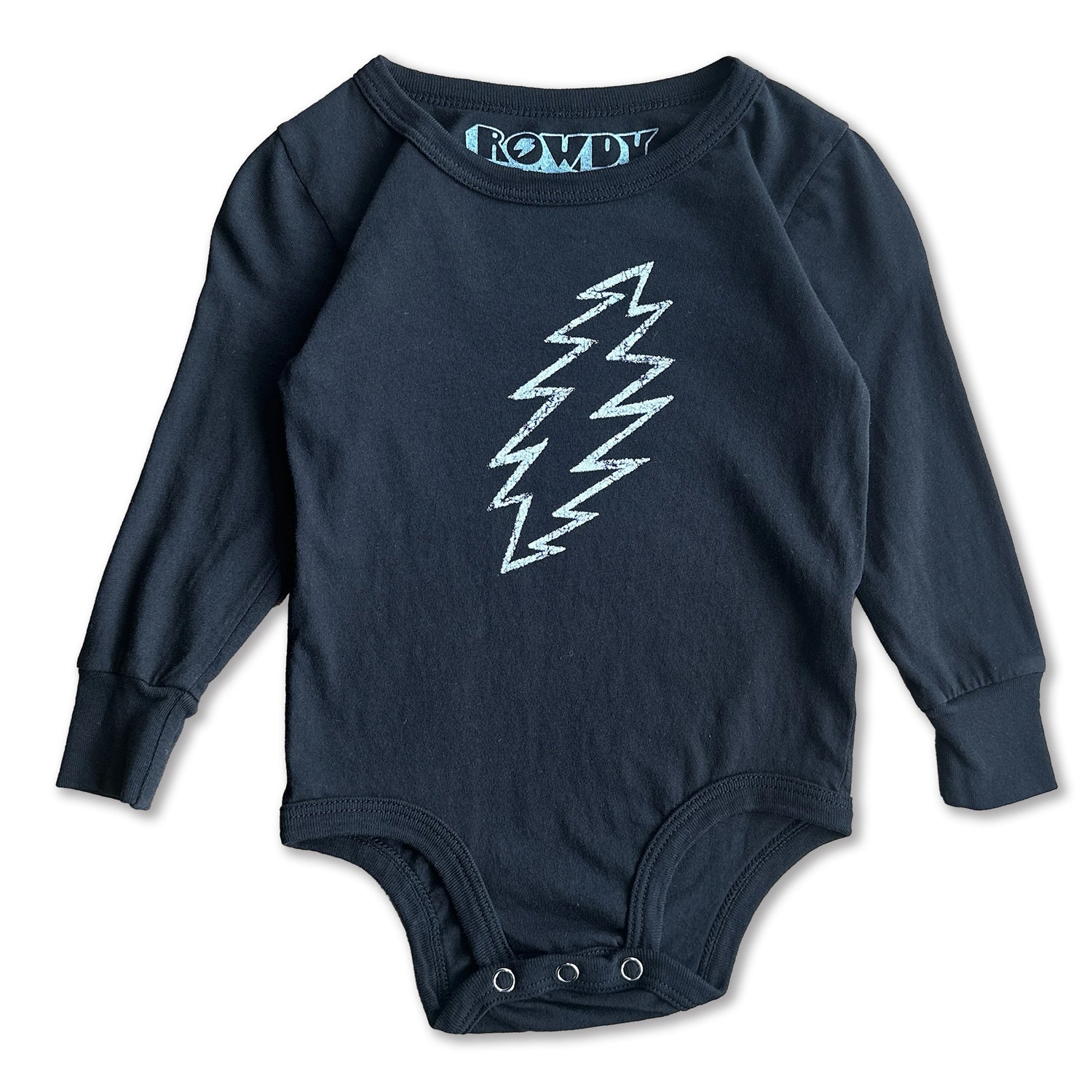 Keep your little one cozy and cool in this Rowdy Sprout Grateful Dead Steal Your Face Drawing Longsleeve Bodysuit. Featuring a playful, iconic graphic, it adds a fun edge to baby’s wardrobe while offering soft, comfortable fabric that’s perfect for active days and snuggly nights. Durable and easy to wear, it’s made to keep your sprout smiling all day long. 100% recyced cotton.
