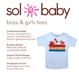 Embrace the laid-back California vibe with the Sol Baby California 4-Color White Stripe Tee! This stylish tee features a classic white stripe design in four vibrant colors, capturing the essence of the Golden State's sunny spirit. Crafted from soft and breathable fabric, it ensures comfort for your little one all day long.