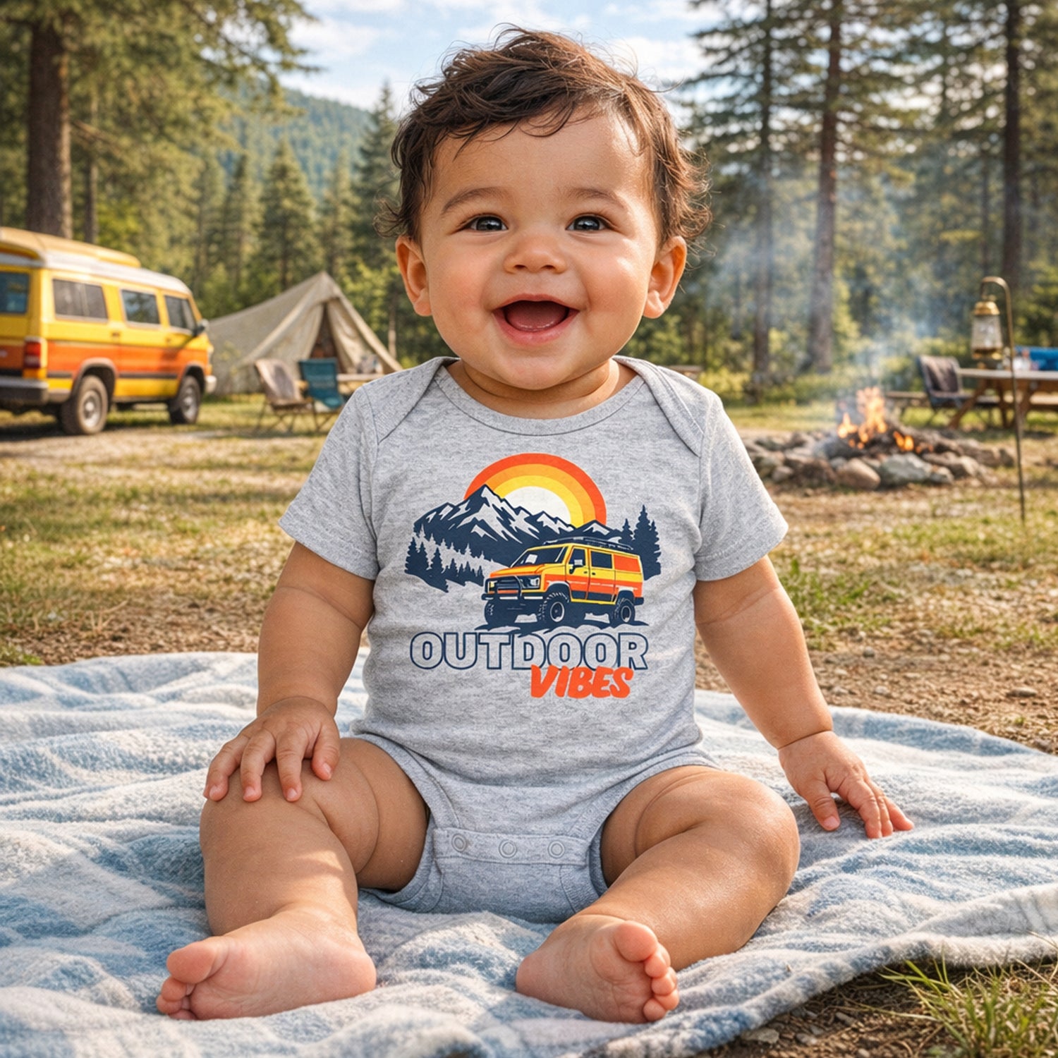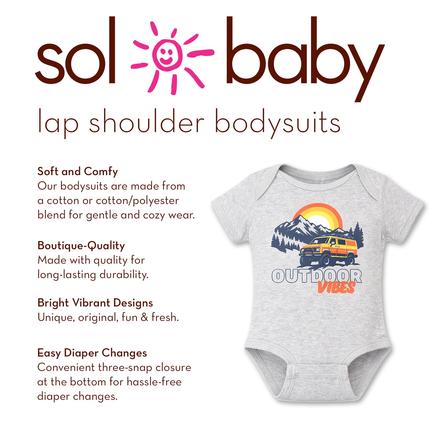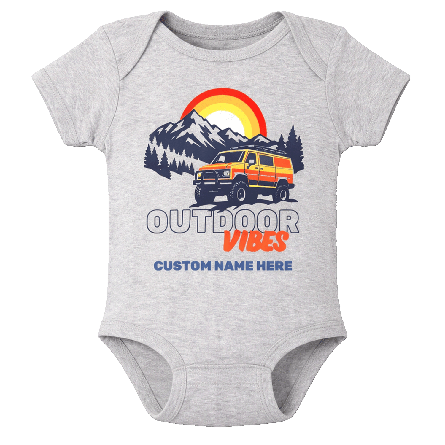 Sol Baby Outdoor Vibes Grey Heather Short Sleeve Bodysuit – Customizable