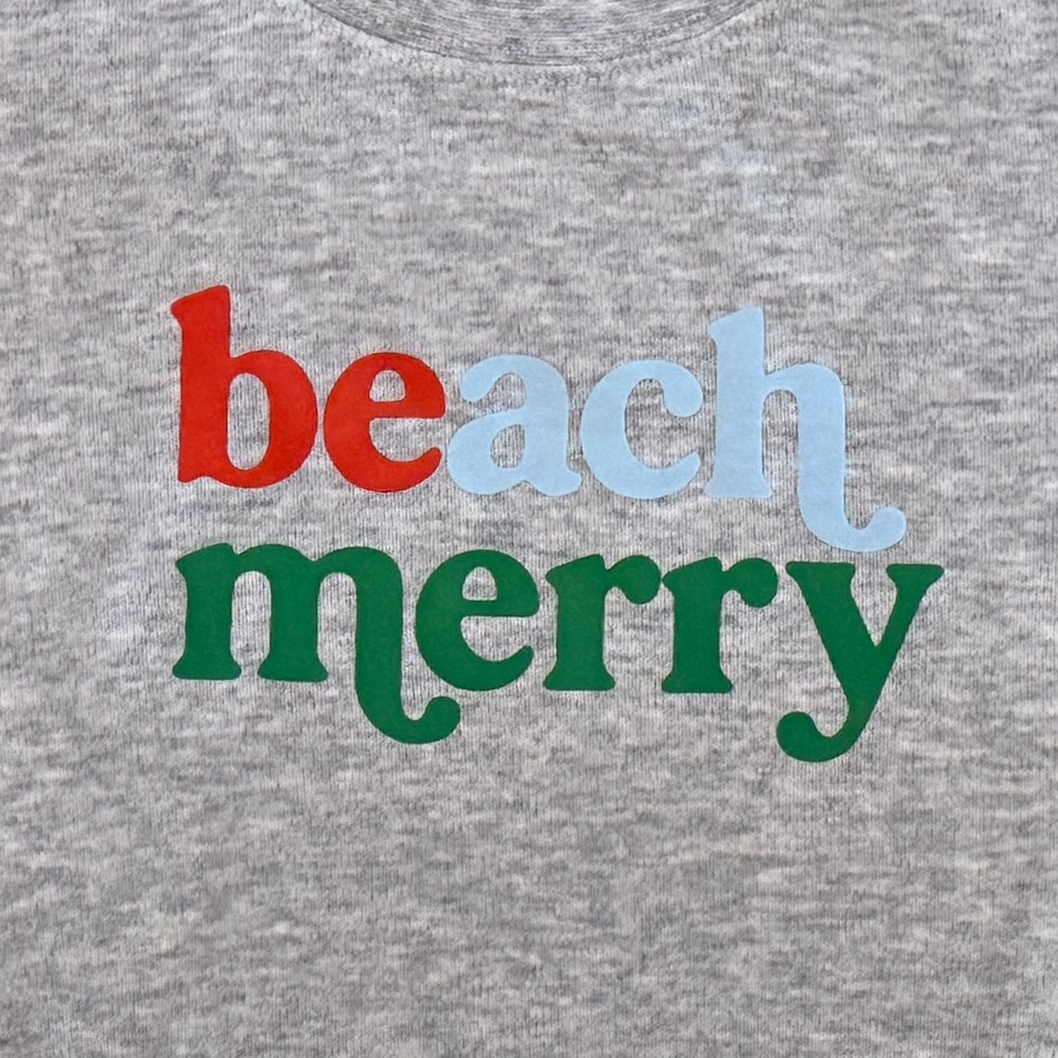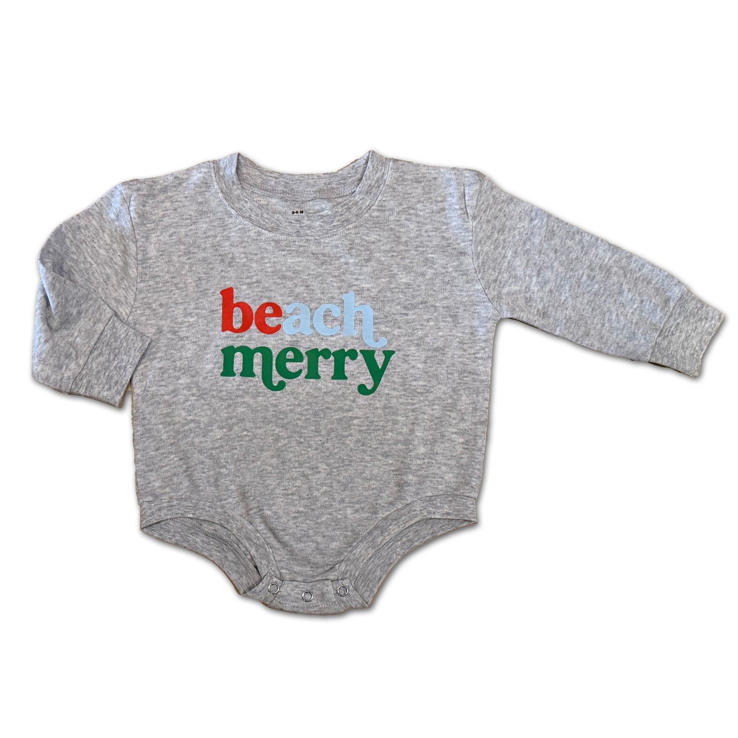 Wrap your little one in cozy holiday cheer with this adorable grey heather bubble romper! Featuring long sleeves perfect for cooler seasons and a playful "Be-ach Merry" design, this bodysuit combines comfort with festive flair. The soft crew neckline and bubble hem create a charming silhouette that's as fun as it is functional. Ideal for holiday photos, celebrations, or everyday snuggles—because every day deserves a splash of joy!