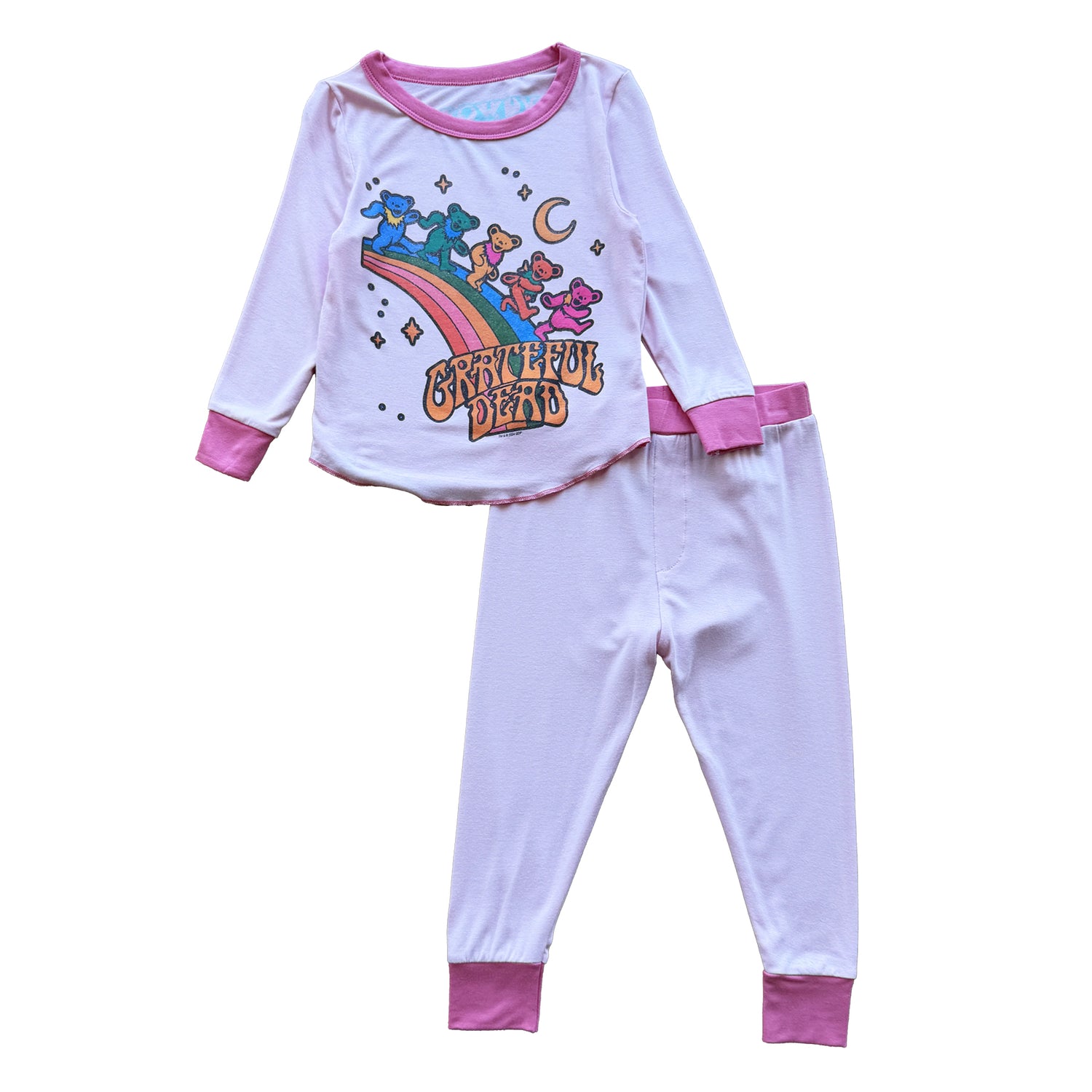 Rowdy Sprout Grateful Dead Rainbow Bears Pink Longsleeve Pajama Set