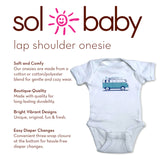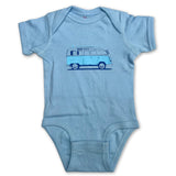 Get that "old school cool" vibe with our Sol Baby Aqua Surf Bus Bodysuit. Perfect for your little one to rock the waves with the iconic surf bus design. Keep them stylish and comfy with this hip and fun bodysuit.