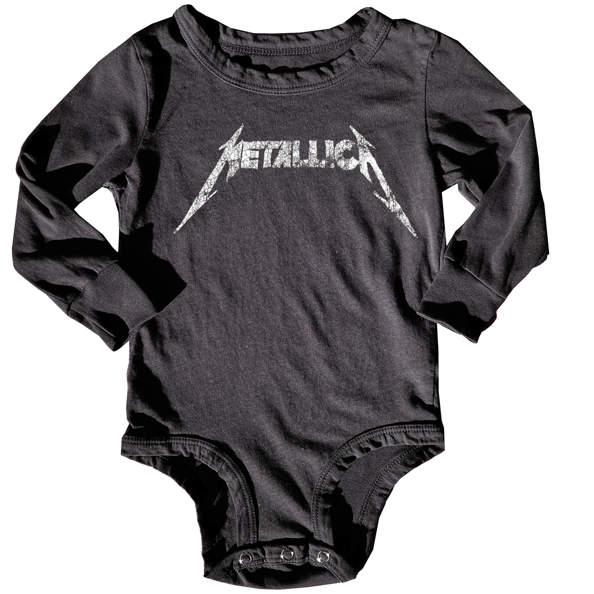 Dress your little rockstar in the Rowdy Sprout Metallica Ride the Lightning long-sleeve bodysuit, perfect for tiny fans with big attitude. Soft, comfy fabric keeps baby cozy while the iconic design adds a playful edge to everyday wear. Ideal for rocking naps and playtime alike!