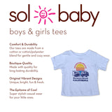 Get ready to hit the road and explore the great outdoors with our Sol Baby Adventure Awaits Hermosa Beach California Beach Camper Short Sleeve White Tee! Featuring a playful graphic and a nod to Hermosa Beach, this short sleeve tee is perfect for little campers. Adventure awaits with this quirky and cool addition to your child's wardrobe! (No boring t-shirts here!!!)