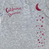 Get your little one ready to hit the West Coast with the Sol Baby California Dreamin' romper! Made of cozy grey heather material, this long sleeve henley style is perfect for your baby's comfort. With a playful California dreamin' print, they'll be ready to take on any adventure (even if it's just naptime!).