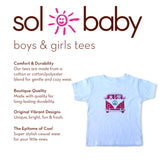 Whether they're attending a holiday party or spreading joy in their daily adventures, this tee is perfect for celebrating the season with peace and goodwill. Available now in crisp white, let your child rock the holiday spirit with the Sol Baby Santa Peace Van Short Sleeve White Tee!