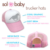 Cool, hip, trendy trucker hats in infant and kids sizes are the perfect accessory for girls and boys. Original designs, unique graphics and limited runs make our Sol Baby trucker hats customer favorites!
