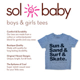 With its versatile grey color, this tee pairs well with any outfit. Let your child embrace the California lifestyle in the Sol Baby Sun & Sand & Surf & Skate California Grey Tee!
