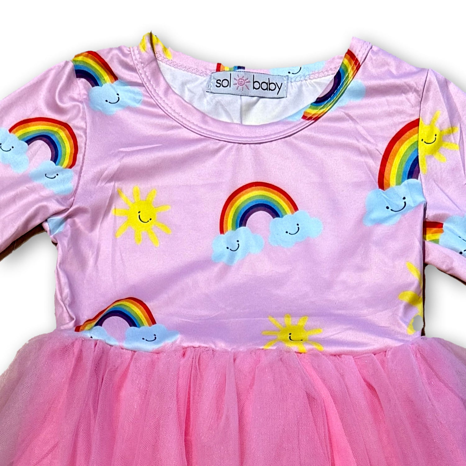 Sol Baby Rainbow Sun Print Pink Tutu Dress